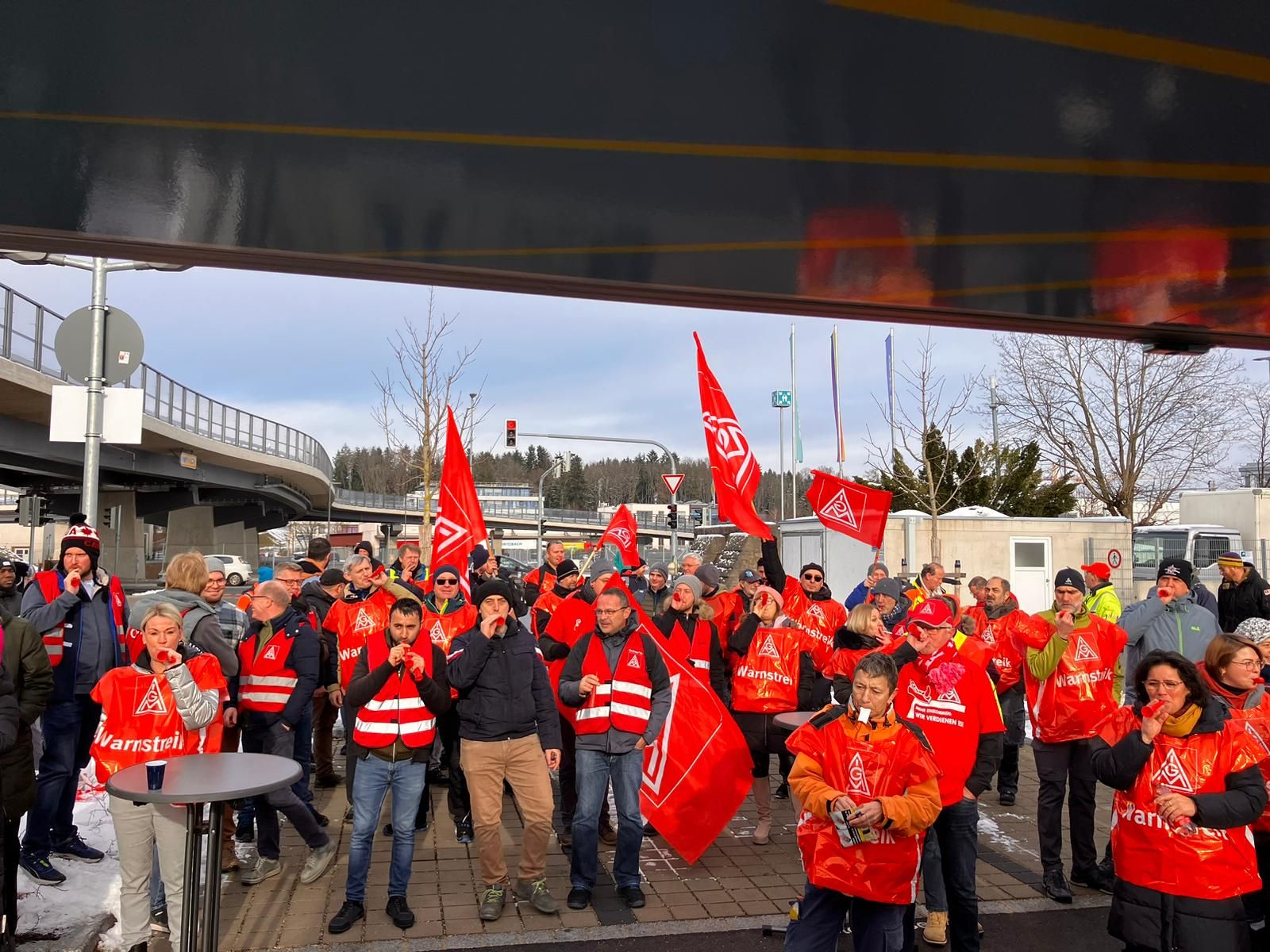 450 Beschäftigte aus neun Betrieben der bayerischen holz- und kunststoffverarbeitenden Industrie haben am 7. Dezember 2023 in Straubing mit einer Demonstration vor der ersten Tarifverhandlung Druck auf die Arbeitgeber gemacht. Beteiligte Betriebe: Heyco (Tittling), Sanipa (Treuchtlingen), Novem Car Interior (Vorbach), Jeld-Wen (Oettingen), Bayerwald (Neukirchen), Völkl (Straubing), Peri (Weißenhorn), Steelcase (Rosenheim) und Hamberger (Stephanskirchen).